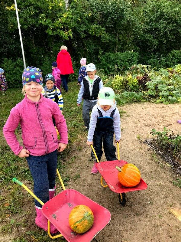 Kevadel aknalaudadel kasvatatud kõrvitsa- ja kurgiseemnetest võrsunud taimed oleme saanud istutada permapeenardele, kus on oma koha leidnud ka püsikud, näiteks mitut sorti maitsetaimed, marjapõõsad, rabarberid ja maasikad. Suve jooksul jälgime, kuidas taimed omavahel kokku sobivad, ja teeme seda arvestades aasta-aastalt korrektuure. Kõrvitsaid saime peenardelt mitu kärutäit, mille laste abiga lasteaia kööki viisime. Õppeaias valminud saagi kasutasid rühmad ära lasteaia õppeköögis. Puu- ja juurviljadest valmistati tervislikke salateid.