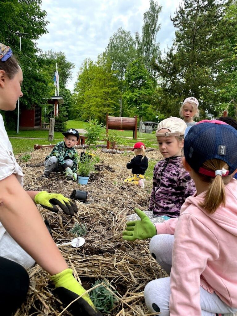 Lasteaia territooriumil on üks väike niitmata aiaosa, millega toetame elurikkust. Seda osa nimetame me putukate koduks. Seal käime lastega luupidega putukaid ja taimede liigirikkust uurimas. Kuulame rohutirtsu sirinat ja vaatleme liblikaid taimede juures lendlemas. Seoses sellega saame juhtida laste tähelepanu looduse mitmekesisusele.