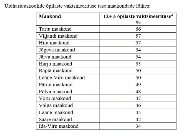[3] Andmed on esitatud koolide kohta, kus õpib vähemalt kümme 12+ vanuses õpilast.