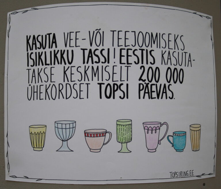 Direktori sõnul on muutunud seegi, et kui varem anti lapsele, kellel oli sünnipäev, kodust koos tordi või kringliga lasteaeda kaasa ka ühekordsed nõud, siis nüüd saadetakse need kohe tagasi. „Kasutame päris nõusid ja joome kannuvett. Suvel palava ilmaga võtab laps kaasa mitte poest ostetud veepudeli, vaid pudeli, mida saab täita ja pesta. Kui oleme korraldanud laatu ja kohvikuid, pakime kauba kas salvräti või karbi sisse, kilekotte kasutame ainult äärmisel juhul. Need on väikesed asjad, aga püüame neist kinni pidada. Hea on näha, kuidas mitte ainult laste, vaid ka töötajate ja perede mõtteviis muutub.“