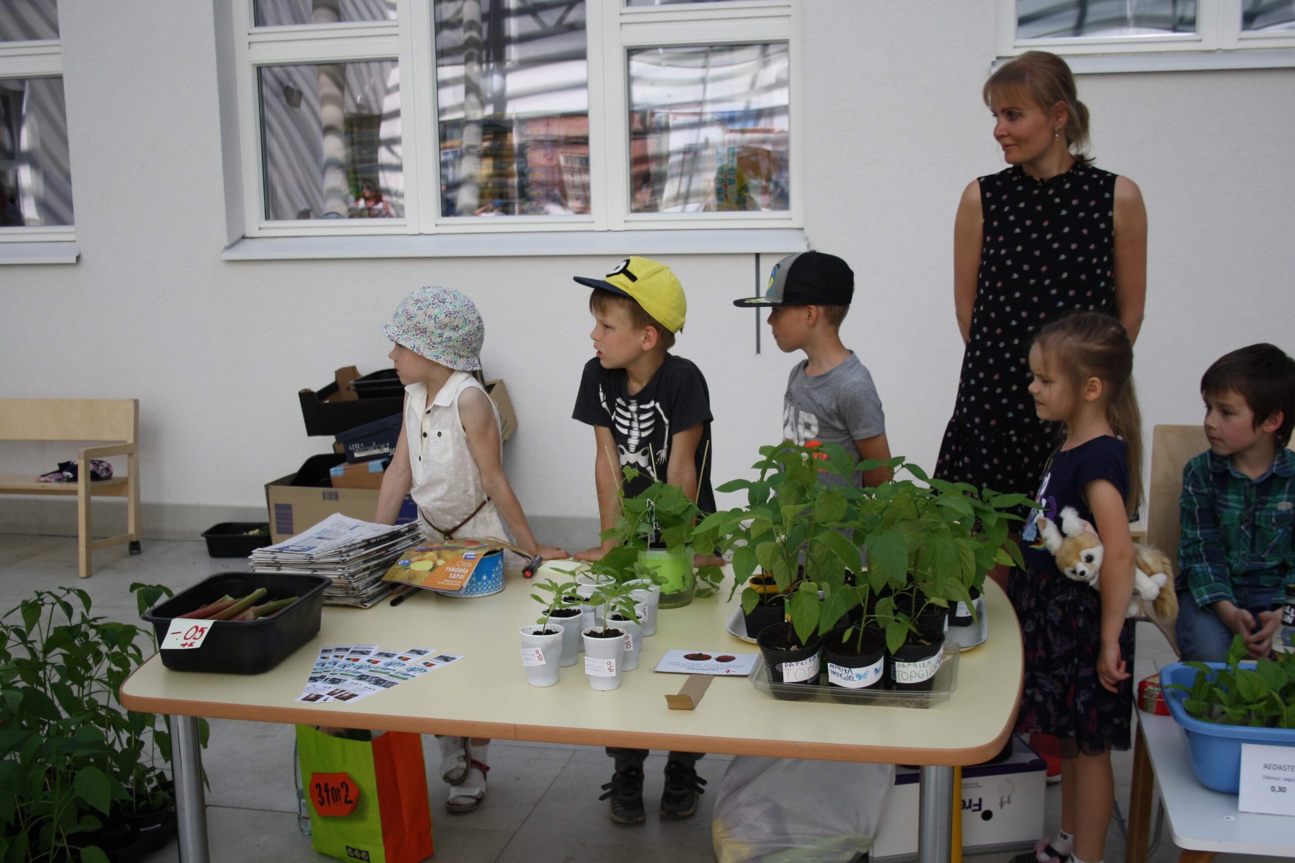 Keskkonnateadlikkust on aidanud suurendada ka kogukonda kaasavad ettevõtmised. Ene Nool räägib, et neli korda on Rohuaia lasteaia aatriumis toimunud maikuus taimelaat, kus linnarahvas käib oma aiamaale taimi ostmas. Ka mõned aiandid on tulnud laadale taimi müüma. „Lapsed on pannud aegsasti rühmades istikud aknalaudadele kasvama, kastnud, pikeerinud, hoolitsenud taimede eest, kirjutanud ise sildid ja olnud müümise juures abiks. Tore juhus oli, kui üks koolipoiss, meie lasteaia vilistlane, samuti kodus taimed kasvama pani ja küsis, kas tohib neid laadale müüma tulla. Väga armas, kui lasteaiast saadud harjumus sedasi püsima jääb. Oktoobri lõpus korraldasime kirbuka, kus sai kasutatud asju osta, müüa, vahetada. Iga laps tõi kodust kaasa ühe mänguasja või raamatu, mida ta ise enam ei kasuta. Hommikul lasteaeda tulles sai ta selle vastu nööbi ja võis valida teiste toodud asjade hulgast endale midagi asemele.“