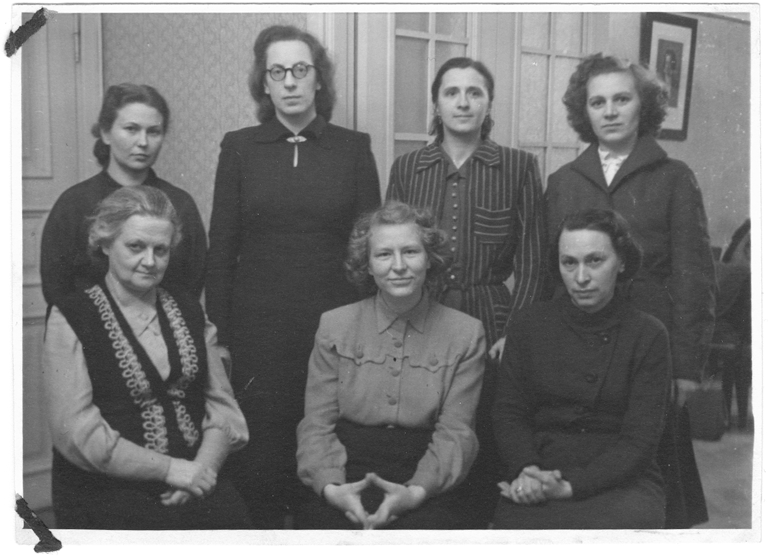 Tallinna Muusikakooli algaastate klaveriõpetajaid. 1. rida vasakult: Irmgard Kaudre, Heljo Sepp ja Anna Klas. 2. rida vasakult: Laine Mets, Erna Saar, Violetta Valk ja Hilja Olm. Fotod: erakogu