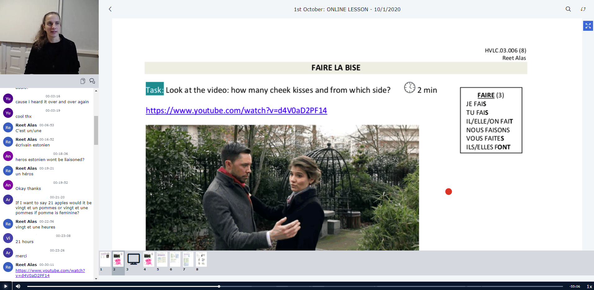 Eelmisel õppeaastal tuli anda tunde veebis ja klassis, vahel mõlemat samaaegselt. Üht rahvusvahelist A1-keeletaseme gruppi juhendasin aga kahe semestri vältel kordagi päris elus trehvamata ainult veebis: lisaks autonoomsele tööle kohtusime kaks korda nädalas 90-minutilistel BigBlueButtoni sessioonidel. See kursus andis kogemuse, mille põhjal on võimalik tehtud töö tulemuslikkust mõnevõrra hinnata.