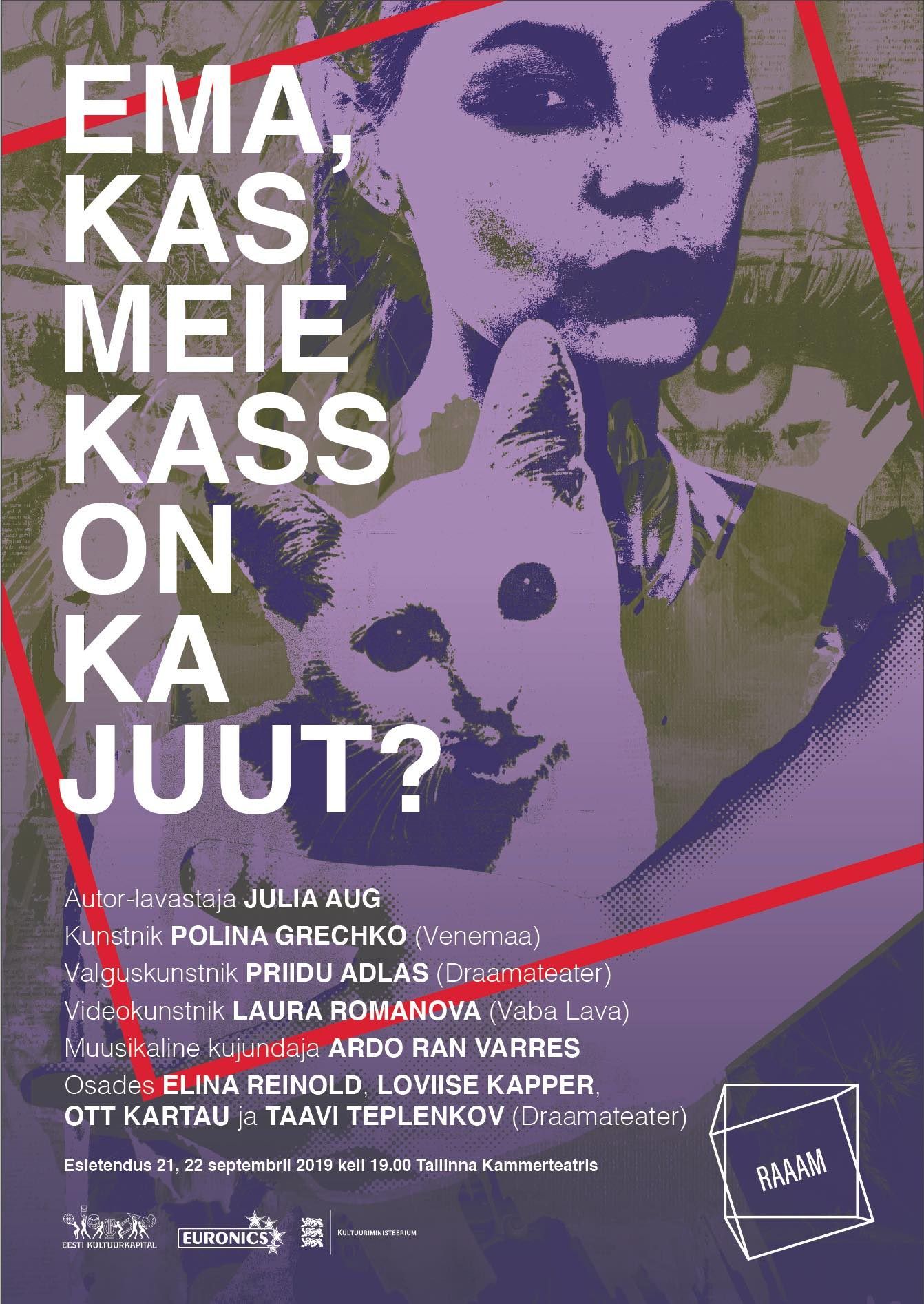 Näidendi „Ema, kas meie kass on ka juut?“ plakat. Teater R.A.A.A.M.