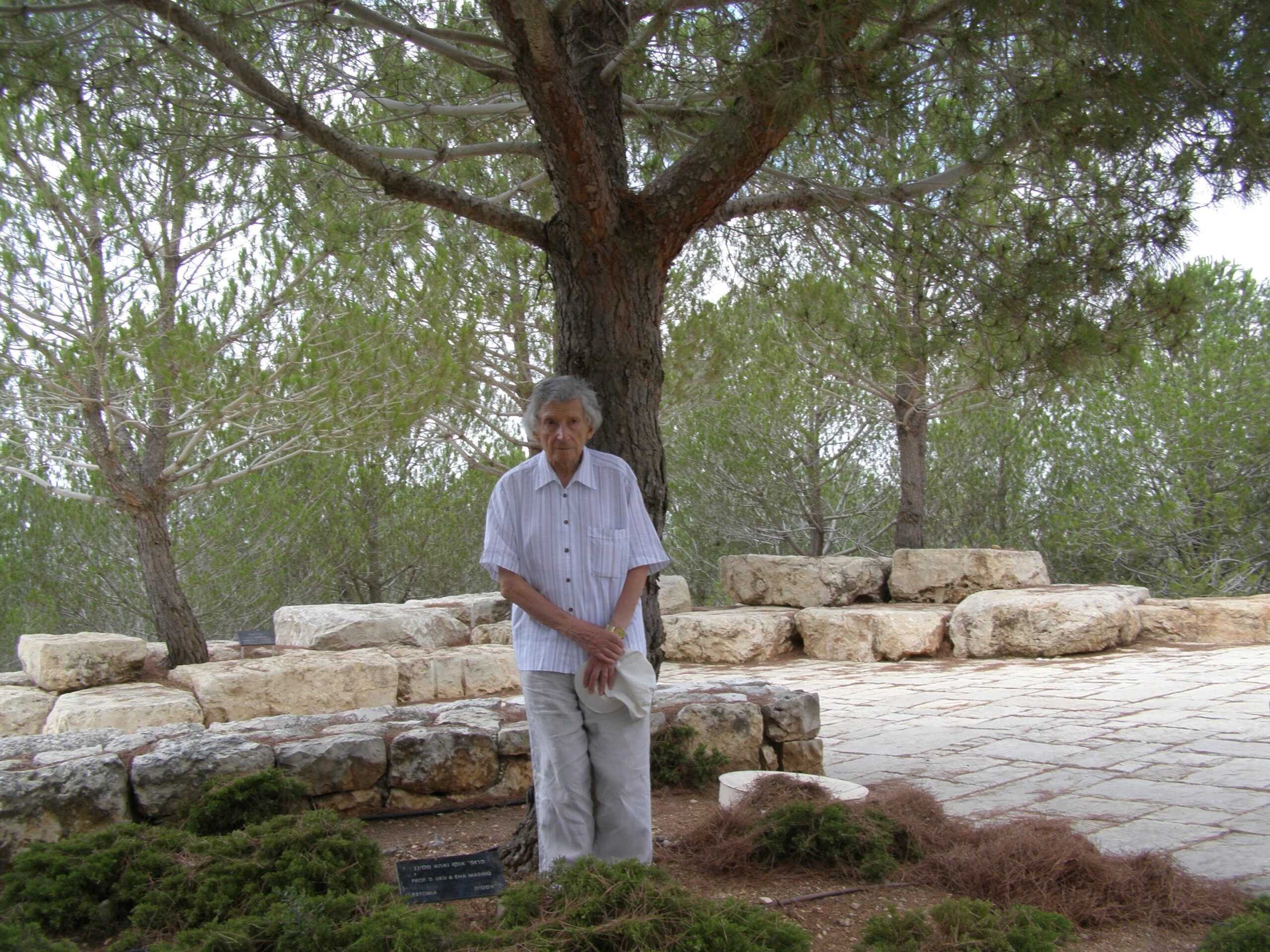 Isidor Levin Uku ja Eha Masingu auks istutatud puu juures Jad va-Šemi memoriaalkeskuses Jeruusalemmas, august 2009.