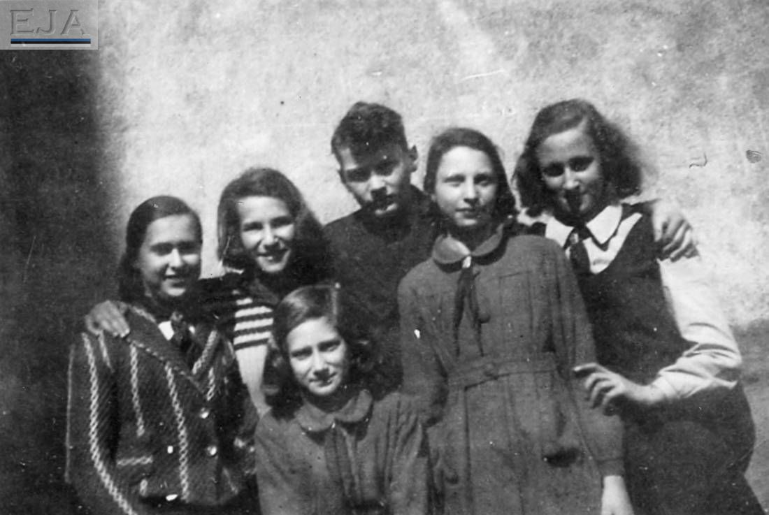 Tallinna Juudi Eragümnaasiumi õpilaste rühm. All keskel on Mirjam Pliner juudi skaudi maleva lipsuga.