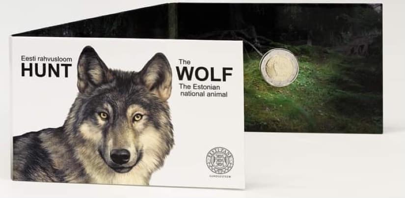 2-eurone Eesti rahvuslooma hundi kujutisega.