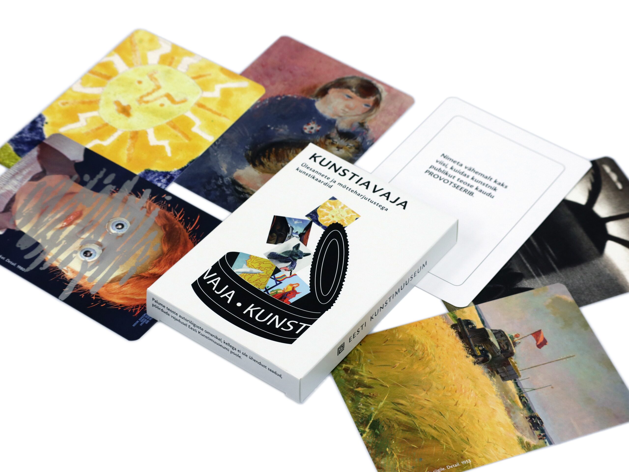 Eesti Kunstimuuseumis valmis mullu sügisel „Kunstiavaja“ kaardipakk, mis muudab mängulisemaks nii teoste vaatamise, näituse külastamise kui ka keeleoskuse arendamise. Komplektis on 42 harjutustega kaarti, mis suunavad teoseid ja ruumi kogema ning vaatama kohati ehk ebahariliku nurga alt. Fookustades pikeneb vaatamisaeg ning kaardimängija avastab enda jaoks seni märkamatuks jäänud tahke nii teostes kui ka iseendas. Õpetajad saavad kaarte abistava materjalina kasutada nii näitustel kui ka kooliruumis. Mitmekülgsed ülesanded sobivad kunstiõpetuse kõrval ka keeleõppe-, kirjandus- või muusikatundi. Olenevalt ülesandest on kaarte võimalik kohandada teoste analüüsimiseks.