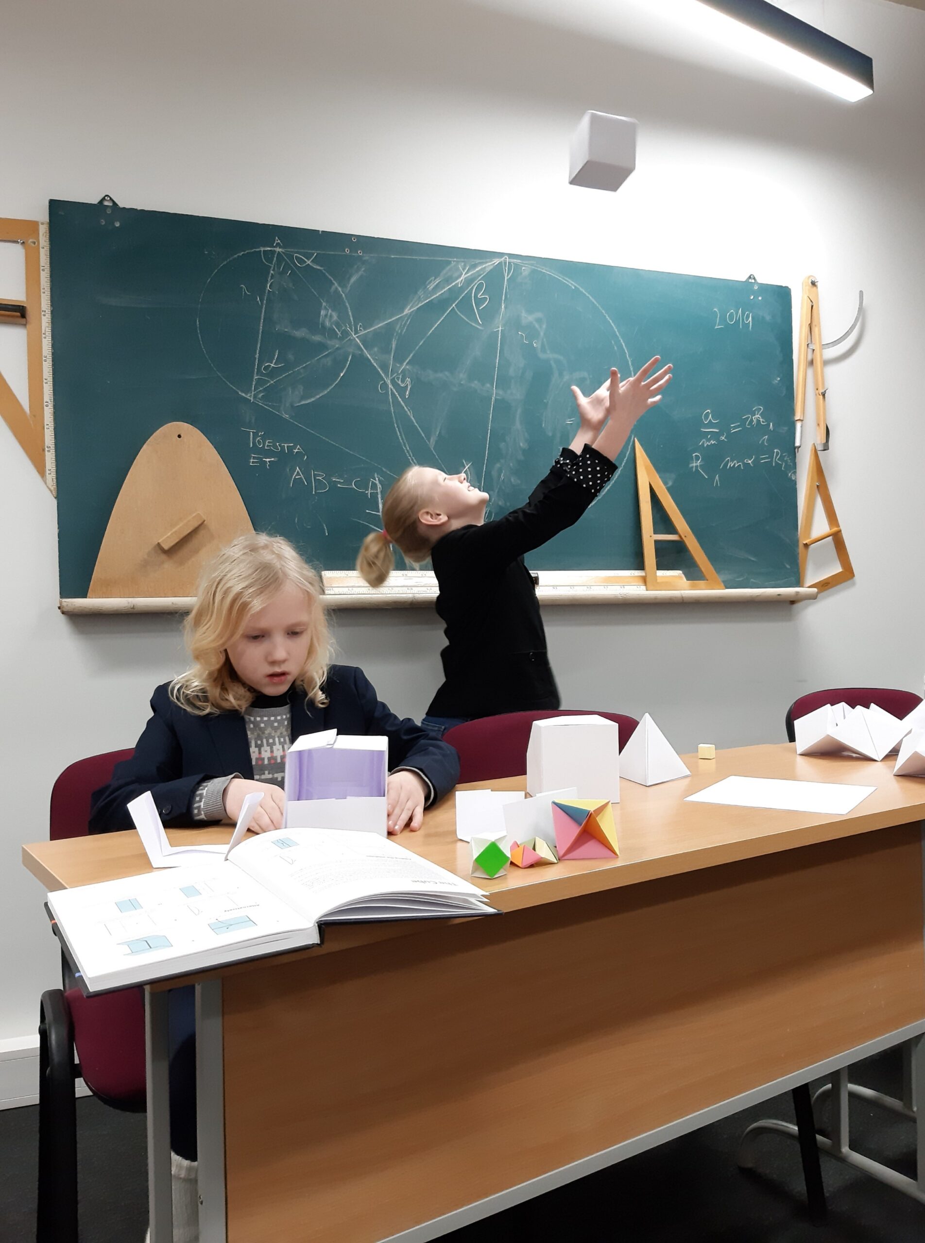 Õpilane voldib kuupi, mis püsib ka liimita koos.