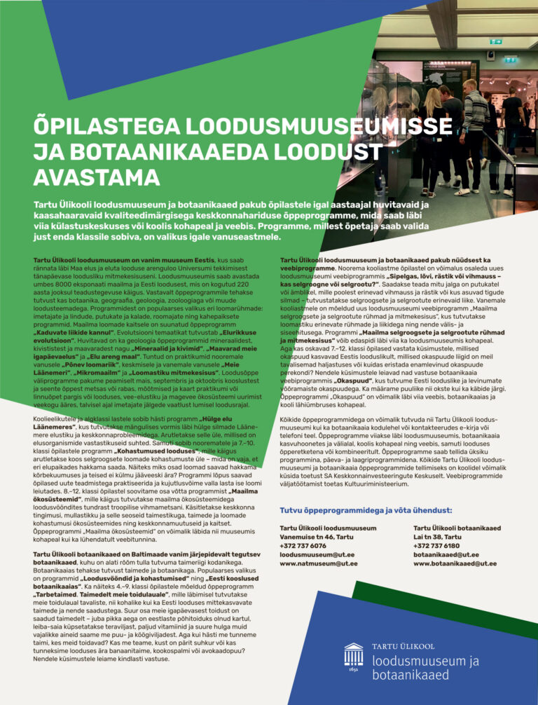 Jääaja Keskuse keskkonnahariduse programmid annavad õpetajatele võimaluse siduda õppetöö vahetu kogemuse, uurimusliku õppe ja looduses tegutsemisega. Programmid…