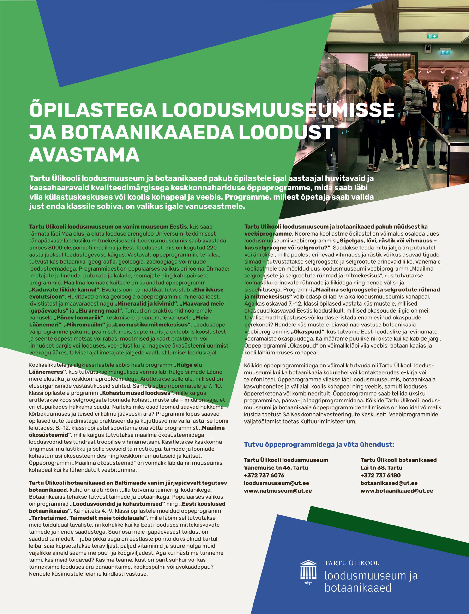 • Vanaaja kultuuride haridusprogrammid sobivad nii põhikooli (5.–6. klass) kui ka gümnaasiumi ajaloo- ja kunstiajaloo tundide täienduseks.