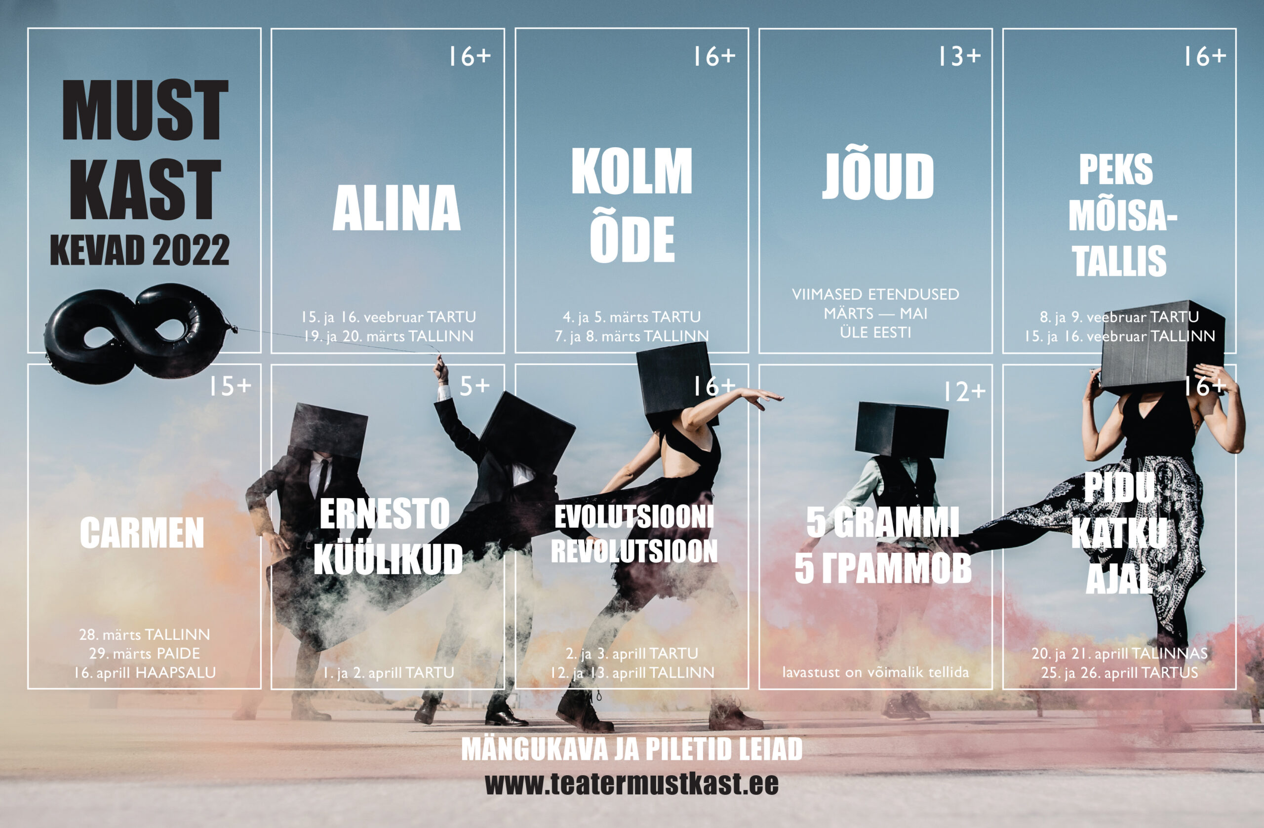 Sel kevadel mängib Must Kast Eesti eri paikades kaheksat lavastust, mille seast leiab sisukat meelelahutust ja tõsisemat mõtlemisainet nii lasteaialaps kui gümnaasiumiõpilane, õpetajast rääkimata.