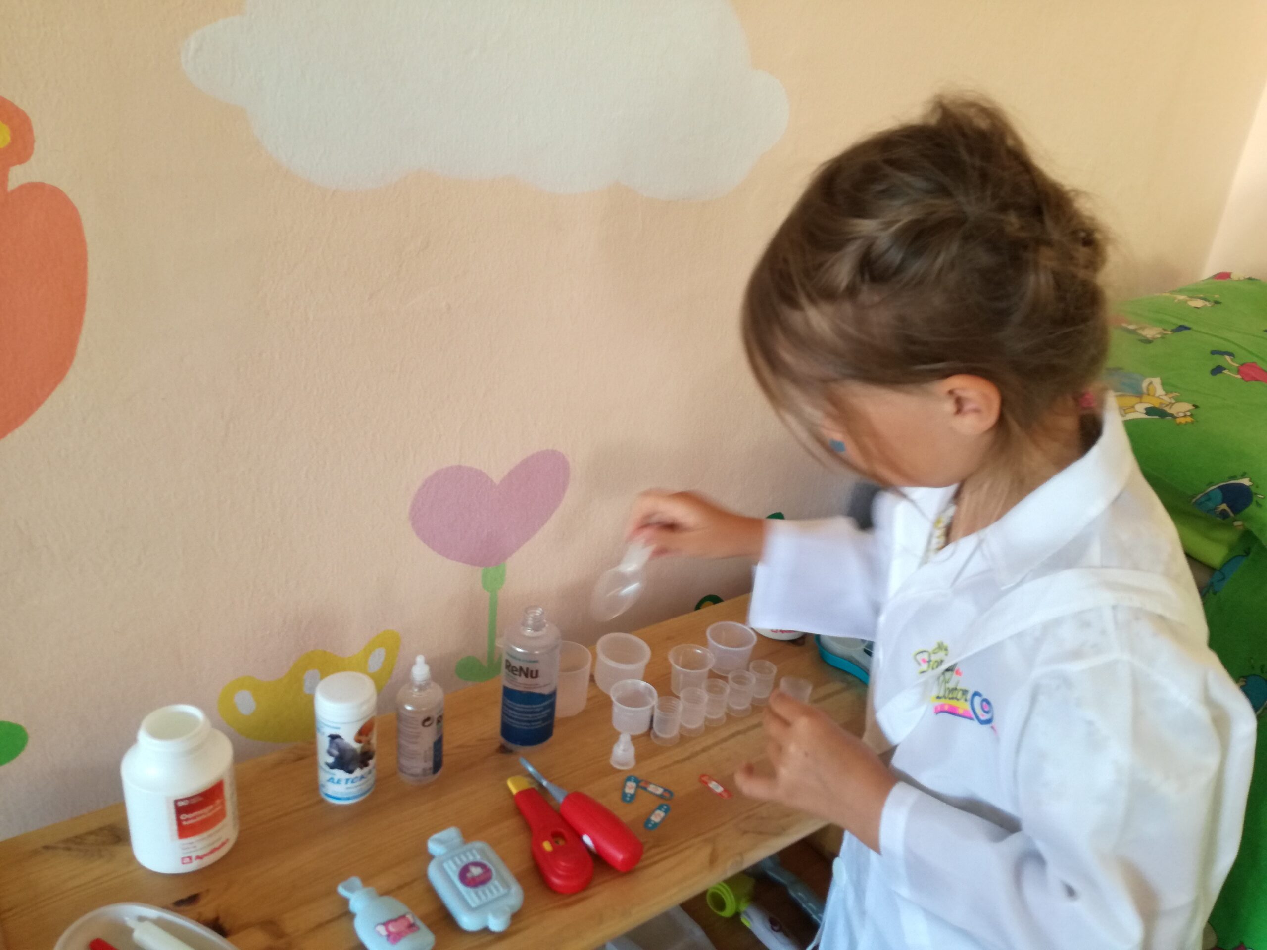 Et lastele meeldib rollimängudeks ümber riietuda, õmblesin neile kitlid ja põlled. Taaskasutuse põhimõttel tegin vanadest diivani poroloonpatjadest kolm väikest patja, millest saab teha näiteks diivani ja haiglavoodi või siis kasutada neid teatrimängus sirmina.