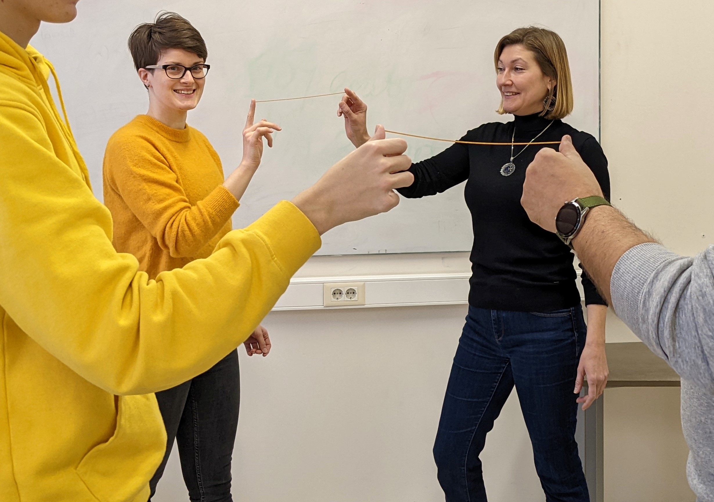 Tatjana Neborjakina: Sotsiaalsete oskuste teema juures tuli rühmal vastu võtta ühine otsus, mida õhupalliga lennates korvist välja visata, et pall õhus püsiks. See lihtne harjutus tõi hästi välja, kuidas keegi rühmaliikmena käitub: kas ta on passiivne või aktiivne, surub oma arvamust peale või on nõus läbi rääkima. Edasi sai igaüks mõelda, kas ta peaks oma käitumises midagi muutma.