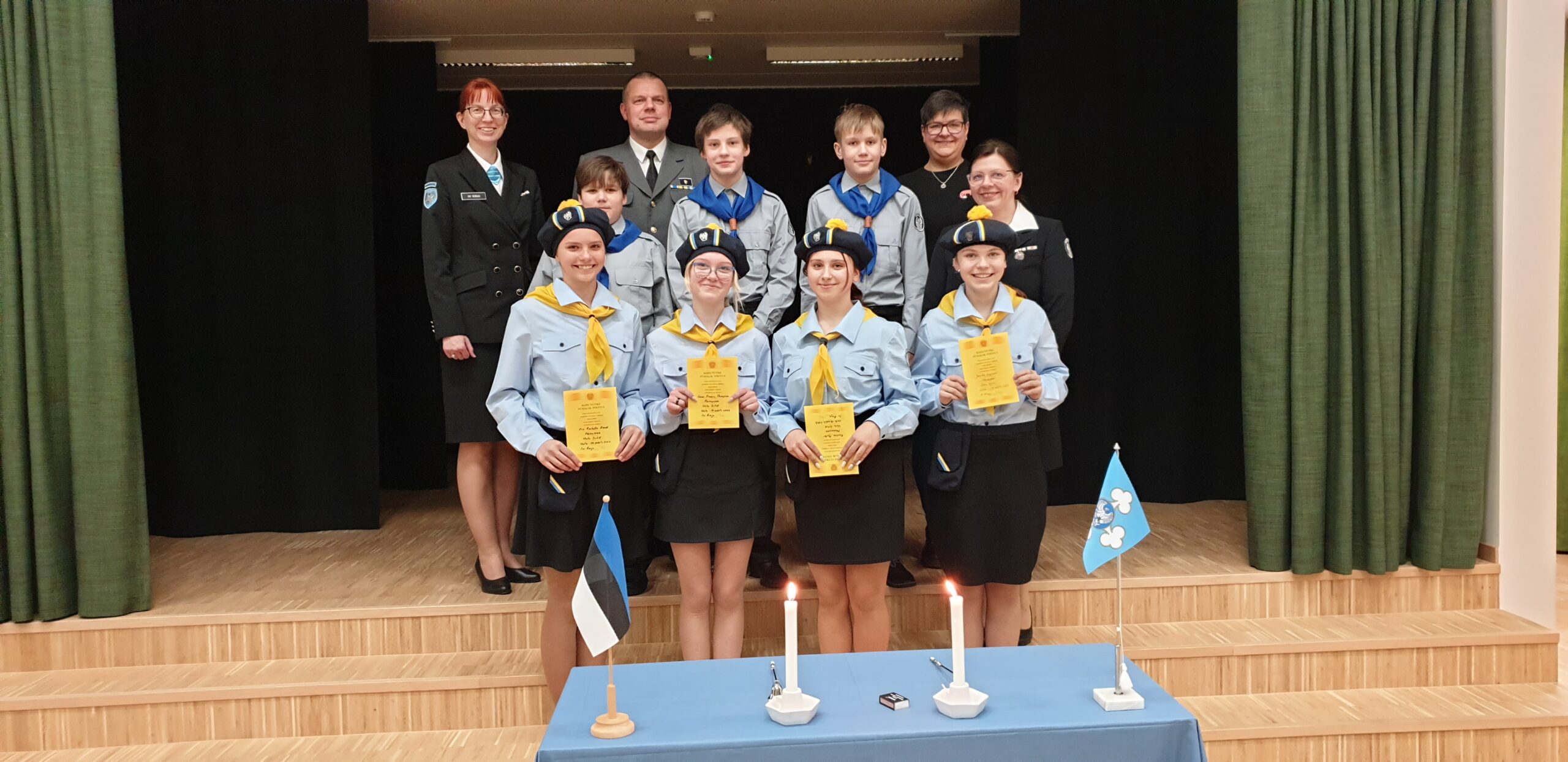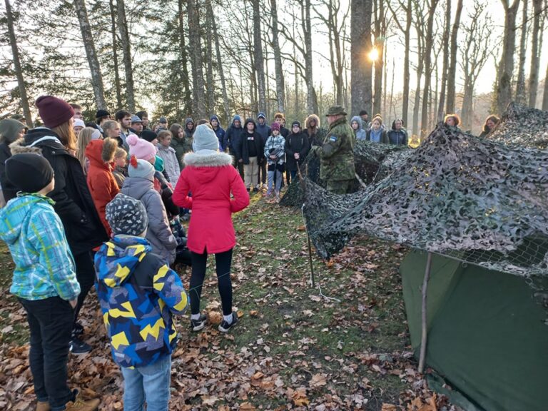 Kolmas suur valdkond, mis nüüd on õige hooga käima läinud, on olnud minu suur unistus Uulu kooli tööle tulekust saadik. Tulin ju Võrumaalt, aga seal on koolides väga populaarne noorte kotkaste ja kodutütarde tegevus. Kas teadsid, et need on Kaitseliidu struktuuriüksused nagu Naiskodukaitsegi? Olin üsna üllatunud, kui sain teada, et Uulus rühma polegi. „Ainult“ neli aastat läkski aega, kuni ma oma julguse ja otsustavuse kokku võtsin ja need rühmad ka meie koolis ellu kutsusin. Mõistagi ei teinud ega tee ma seda vabatahtlikku tööd üksi. Minu seljatagust julgestavad mitmed inimesed tervest Kaitseliidust. Juba sügisel alustasime tutvustusüritustega, kohale tulid laigulised mehed ja naised, näidati tehnikat ja varjestust, novembris käisime esimeste vapratega nende n-ö matkavõimekust testimas. Jaanuaris osalesime juba maakondlikus talvelaagris ning märtsis, ilusal emakeelepäeval, toimus meie kaunis aulas pidulik koondus, kus võeti vastu seitse uut noorkotkast ja kodutütart! Sealjuures kolm kandidaati oli COVID vahetult enne maha murdnud, täiskoosseisus olnuks meil kümme noort. Ausalt öeldes olin päris üllatunud, kui hiljem Facebookis nägin, kuidas just uhkusest pakatavad vanemad oma pidulikus vormis pojast või tütrest fotopostitusi jagasid. Aga oli ikka pidulik päev küll! Ning Olev, kas teadsid, et ka meie direktor on endine kodutütar? Nii et võid aimata, millise erilise hingesoojusega ta meie üritusel osales! Ta toonitas ka oma tervituskõnes noortele, et nendegi nimed lähevad nüüd igaveseks kooli ajalukku, sest nemad on Uulu kooli ajaloos esimesed, kes noorkotkaste ja kodutütarde rühma kuuluvad. Detail, mille peale ma ise ei tulnudki.