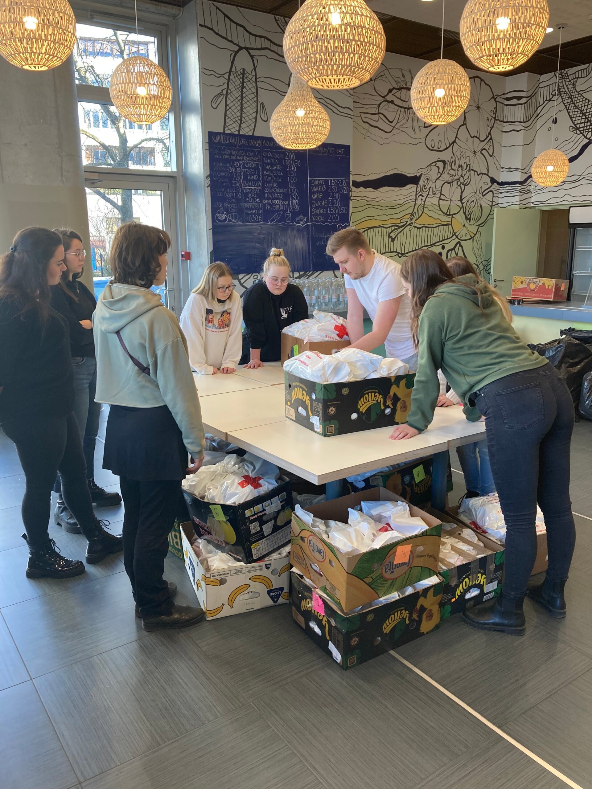 Tallinna Ülikooli üliõpilaskonna tudengiorganisatsiooni Tudengid Ukraina Heaks / Students with Ukraine vabatahtlikud kutsuvad koostööle kohalikke ettevõtteid, kes on valmis Ukraina sõjapõgenikele toidu- ja esmatarbekaupu annetama.