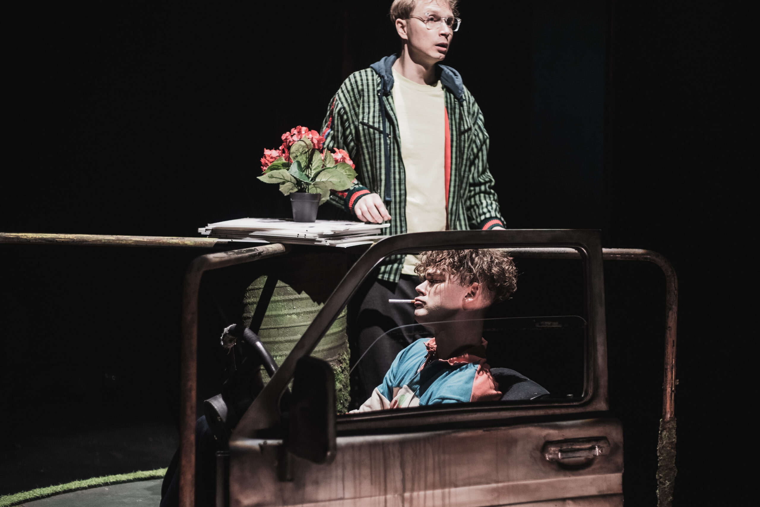 Mirko Rajase lavastatud „Miks me varastasime auto“ põhineb saksa kirjaniku Wolfgang Herrndorfi noorteromaanil „Tschick“. See on lugu kahest vastandlikust klassivennast Maik Klingenbergist ja Andrei Tšihhatšovist (Tšikist), kes tunnevad end kumbki omal kombel elu autsaideritena, ent kelle teed ühel hetkel juhuslikult ristuvad. Tšikk (Mart Müürisepp) kutsub Maiki (Mait Joorits) vana „laenatud“ autopanniga veidi sõitma, ent sellest kujuneb raju seiklus läbi Saksamaa, mida saalitäis poiste eakaaslasi hinge kinni pidades jälgib.