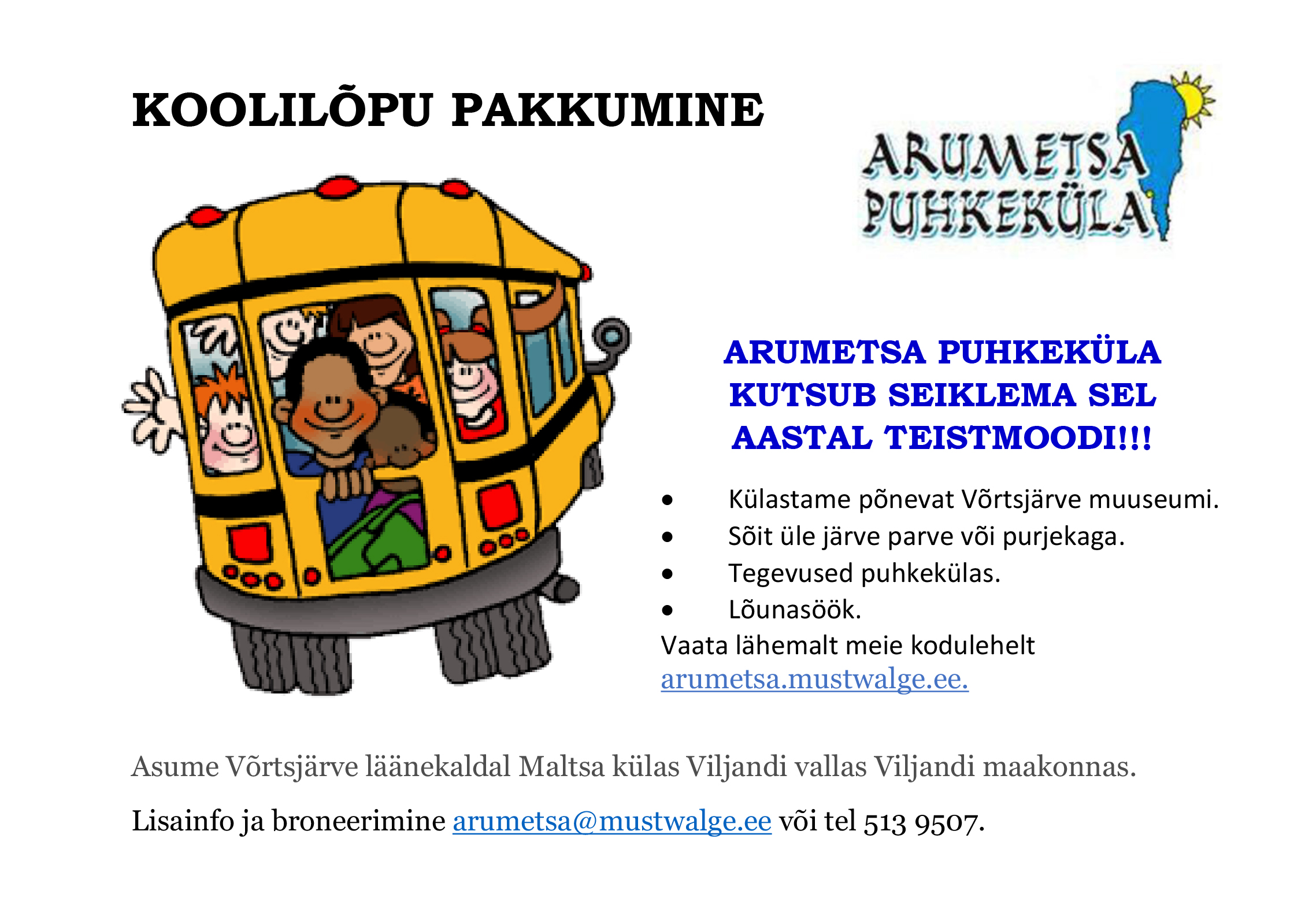Küsi pakkumist oma klassile, kirjutades meile arumetsa@mustwalge.ee, või helista tel 513 9507.