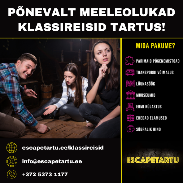 Vaata lisa: escapetartu.ee/klassireisid, info@escapetartu.ee, +372 5373 1177