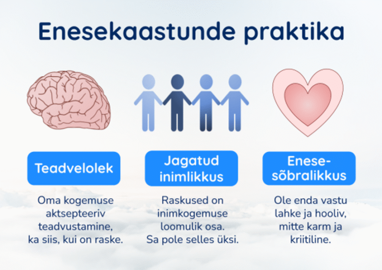 Proovi päeva jooksul olla teadlik oma kogemusest ning aktsepteerida seda sellisena, nagu see on. Tea, et ka keeruline või raske kogemus on elu osa ning sa pole selles üksi. Proovi olla enda vastu lahke ja hooliv selles kogemuses, mitte karm ega kriitiline. Proovi märgata, kas tunned erinevust, kui oled enda vastu kaastundlik, ja siis, kui oled kriitiline.