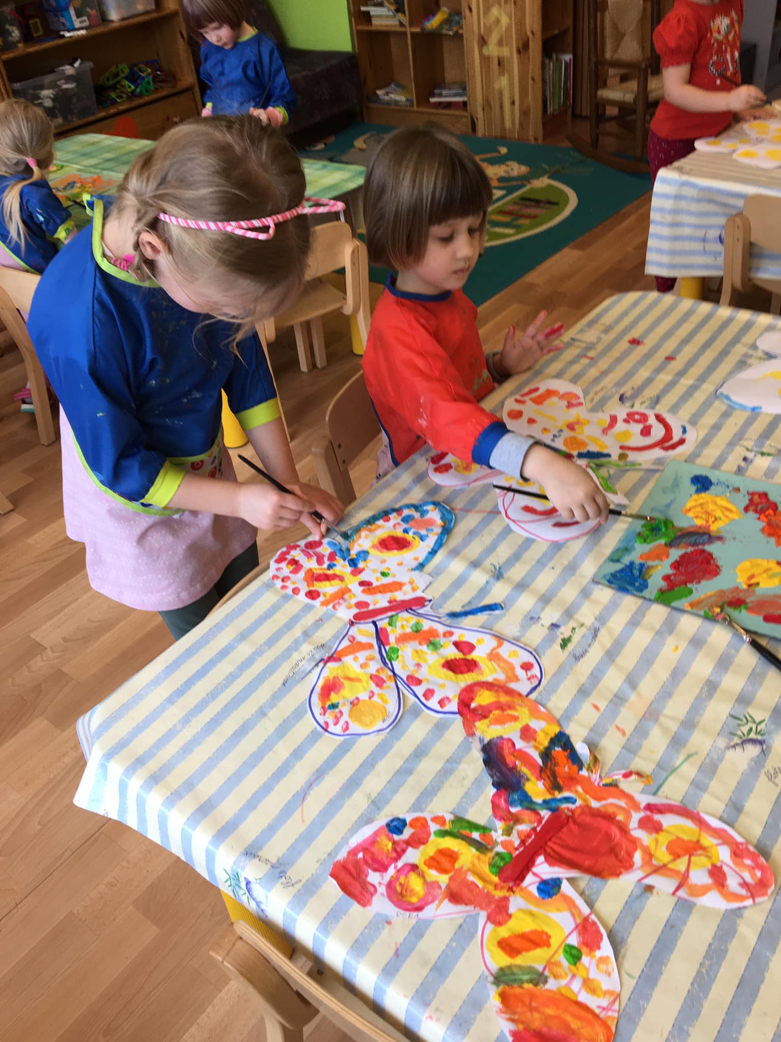 Päev rühmas algabki nii, et kui lapsed hommikul tulevad, võivad nad kohe hakata joonistama ja meisterdama, räägib õpetaja Ilona Lillemägi. „Värvipliiatsid, paberid, käärid, liimid, plastiliin on kogu aeg laual käepärast, me ise kutsumegi seda vaba kunsti lauaks. Ka vabal ajal on laste üks lemmiktegevus joonistada, meisterdada, pilte välja lõigata ja paberile kleepida. Kõiki muidki tegevusi – matemaatikat, eesti keelt, looduse ja keskkonna teemat – saab kunstiga siduda. Eelmisel nädalal joonistasime ja maalisime liblikaid. Lisaks loetlesime neid, vaatasime, millise kujuga nad on, kirjeldasime nende tiibade värve ja mustreid ning rääkisime sellest, kuidas munadest kooruvad röövikud, kellest omakorda saavad liblikad. Ka tammetõrud, käbid ja kastanimunad on rühmas riiulis kogu aeg olemas. Neist teevad lapsed mitte ainult põnevaid kujundeid, vaid ka tähti ja numbreid. Küsingi siis, mitut tõru või käbi keegi kasutas. Nii saab õppida matemaatikat, loendada, liita, lahutada. Teeme ka tekstülesandeid: Triinul on kolm ja Taavil kaks tõru, mitu tõru on kokku? Kõike, mida õpime, õpime mängu kaudu ja nii, et ikka nalja ka saaks!“