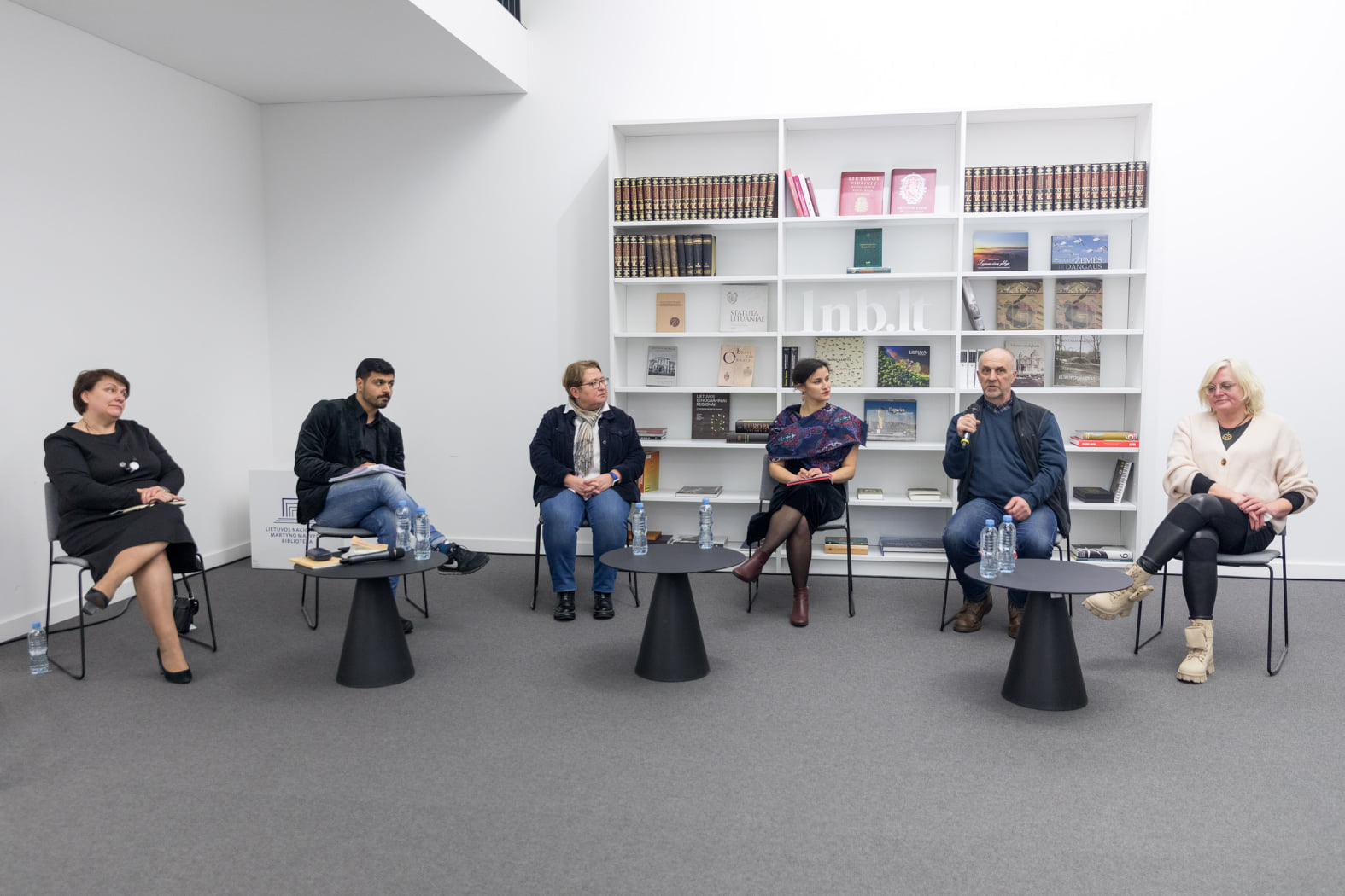 Raamatu „Leedu romade suulise ajaloo arhiiv“ esitlus: Jolanta Budriūnienė, Leedu Rahvusraamatukogu dokumentaalpärandi uurimise osakonna juhataja, roma aktivist ja Kesk-Euroopa Ülikooli magistrant Gopalas Michailovskis, sotsiaalantropoloog Aušra Simoniukštytė, sotsiaalantropoloogia doktorant Agnieška Avin, sanskritoloog Vytis Vidūnas ja keeleteadlane Jolanata Zabaraskaitė.