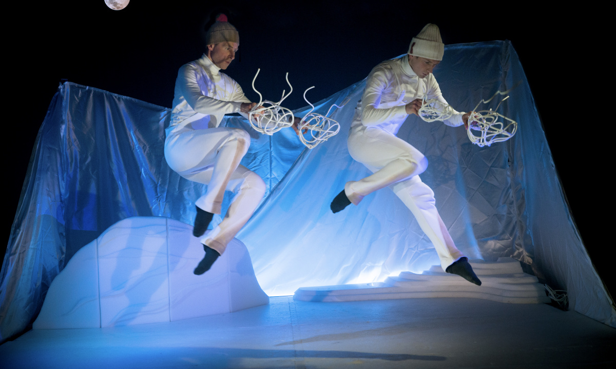 Üks armas väike vahepala oli ka nukuetendus „Snö“, kus kahe näitleja koosmängus sündis pisikeses ruumis terve arktiline maastik. Tükk oli siiras, olgugi mitte kuigi enneolematu. Siiski jäid meelde mitmed hetked: piiksuva elektroonilise muusika mõnusasse rütmi sobituv tants hiirenukkudega või põdravasika kõrva märgistamine. Samuti oli vahva lahendus, mis pani osa lavast lume moodi krudisema, kui sellele astuda. Näitlejate otsene kontakti loomine publikuga enne etendust tegi saali kuidagi kodusekski.