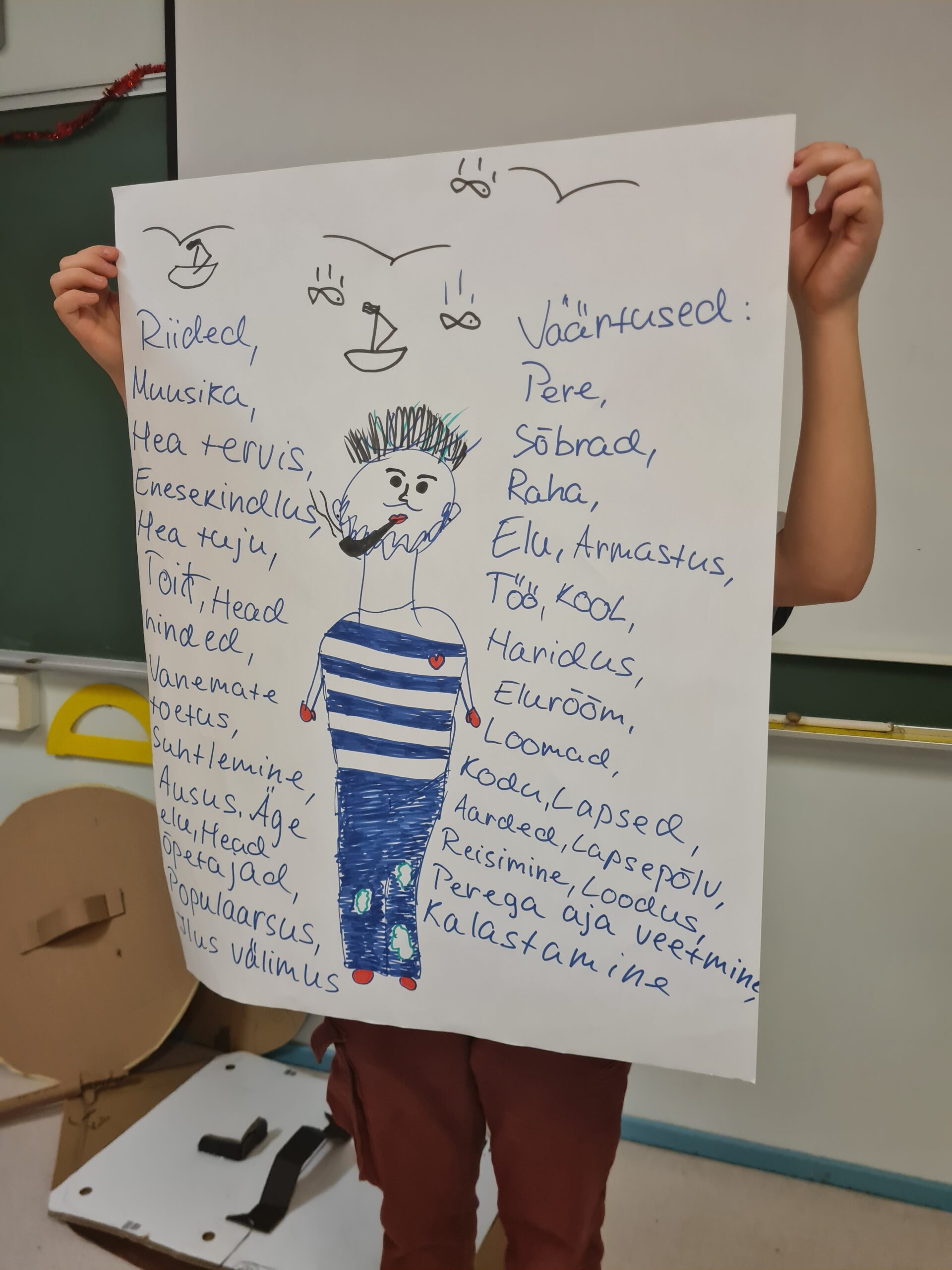 Minapildi teema avamiseks ja mõistmiseks joonistasid õpilased endast plakateid, seejuures üksteist juhendades. Plakatitele märgiti olulisi minapilti kujundavaid tegureid, nagu näiteks sõbrad, töö, perekond, raha, haridus, oskused, stiil, hobid jne. Iga grupp esitles oma plakatit hiljem kogu klassile.