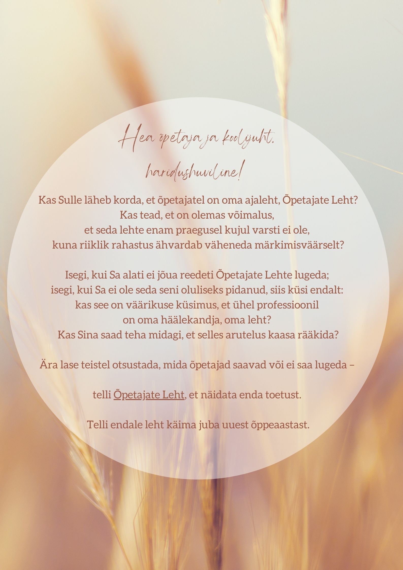 Tellige Õpetajate Leht alates uuest õppeaastast!
