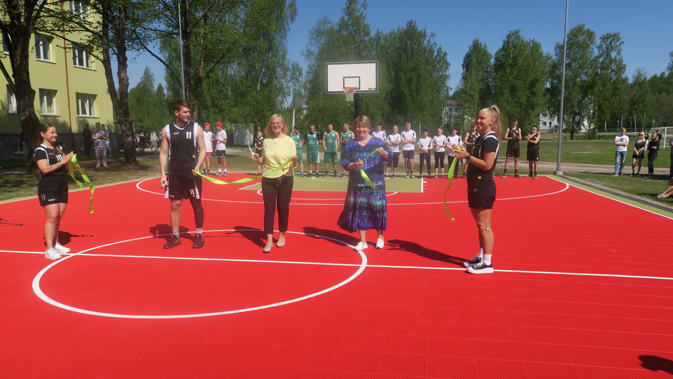 Platsil lõikasid lindi läbi direktor Riina Müürsepp, asemeer Varje Tipp ja Pärnu KHK parim korvpallur Danel Drobet.