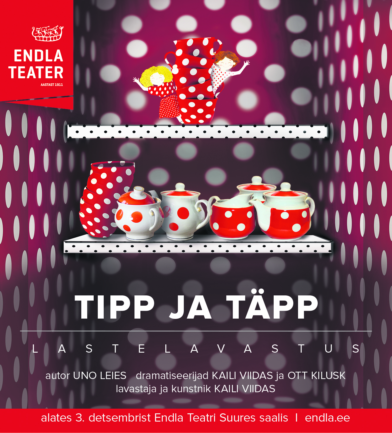 Detsembris jõuab lavale Uno Leiese lugudel põhinev lastelavastus „Tipp ja Täpp“. Need kaks lõbusat tegelast nuputavad alailma uusi põnevaid asju välja, mängivad oma sõpradele vingerpusse ja armastavad üle kõige kommi süüa. Lavastaja on Kaili Viidas, osades Kati Ong, Tambet Seling, Ireen Kennik, Karl-Andreas Kalmet, Sten Karpov.