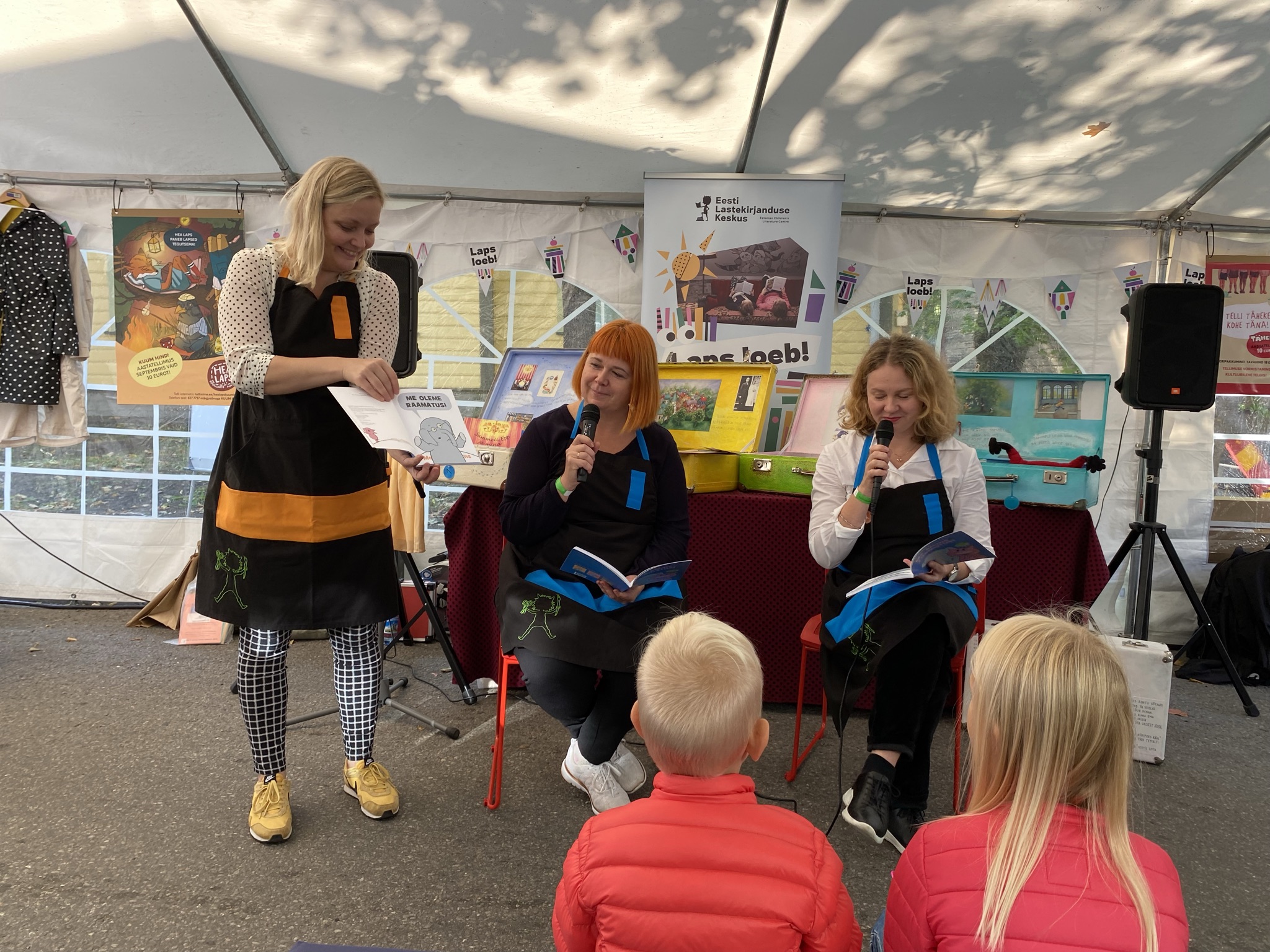 Eesti Lastekirjanduse Keskus Tallinna kirjandusfestivalil 2021. a. Laste ees on Anneli Kengsepp ja Katrin Tõnisson lastekirjanduse keskusest ja kirjanik Kätlin Vainola. Fotod: ELK