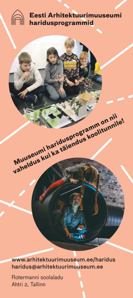 Kõikide muuseumiprogrammide kohta saab lisainfot ja tunni kokku leppida, kirjutades e-aadressil haridus@arhitektuurimuuseum.ee.