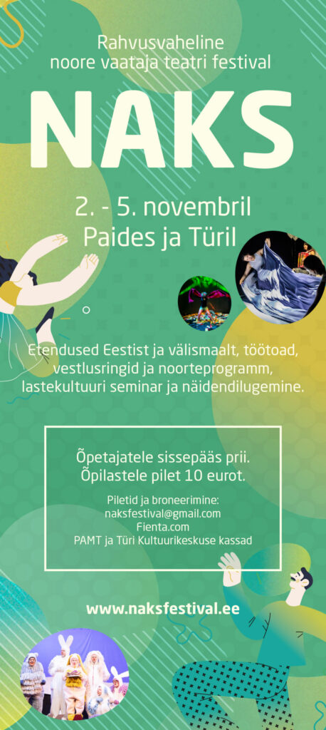 Rahvusvaheline noore vaataja teatri festival NAKS 2022 tuleb sel sügisel juubelifestivaliga Eestimaa südamesse, Paidesse ja Türile. Nelja päeva jooksul, 2.–5. novembrini astuvad üles armastatud Eesti teatritrupid, läbi viiakse mitmekülgseid töötube, külla tulevad teatritegijad Soomest, Poolast, Ukrainast ja Slovakkiast ning toimub järgmine lastekultuuri seminar.