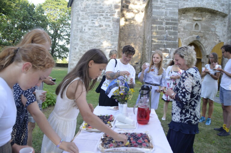 Piia Aasmäe: Kui riigil on keeruline aeg, siis on loomulik, et kirik aitab, kuidas oskab. Mina ja Evelin Müüripeal oleme mõlemad Jaani koguduse liikmed ning soov aidata tekkis kohe, kui Ukraina sõda algas. Juunis, kui haridusministeerium keelelaagrite jaoks raha eraldas, tundsime, et nüüd ongi selleks võimalus. Jaani kogudus pani ka omalt poolt õla alla, kogudes kaks pühapäeva laagri jaoks annetusi. Kõik laagri läbiviijad tegid oma tööd tasuta, igaühel oli oma põhjus, miks ta seda teeb. Lisaks meile kolmele kuulusid meeskonda veel keeleõpetaja Liis Avarmaa ja muusikaõpetaja Sirli Karro.