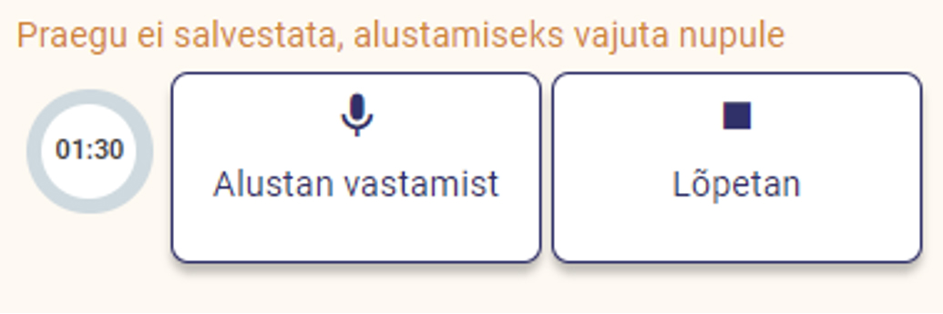 Oma suulisi vastuseid saab õpilane salvestada ainult üks kord. Tal on piisavalt aega oma vastust parandada, kuid vajutades nuppu „Lõpetan“ tal teist võimalust enam ei ole.