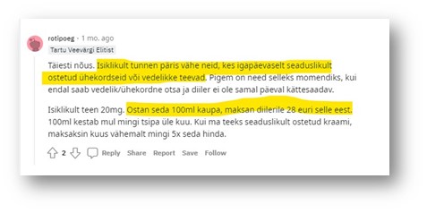 Ametlikes poodides on olnud kuulda ka seda, et pärast populaarse telesaate „Laser“ tehtud eksperimenti on mitmed kliendid hakanud soetama maitseid just seal näidatud e-poest. N-ö põhimaterjali ostavad Eesti poest, kuid magusaid maitseid soetavad tollest poest.