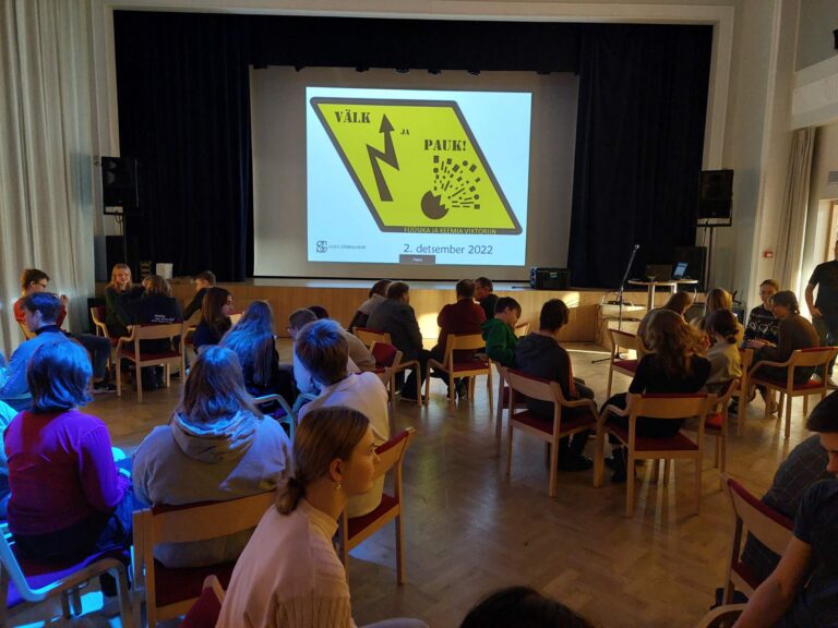 Detsembri algul kogunesid Harjumaa koolide esindajad Saku Gümnaasiumi gümnaasiumihoonesse, et osaleda keemia- ja füüsikaviktoriinis „Välk ja pauk!“. Viktoriinist, mis toimus 10. korda, on aastate jooksul osa võtnud üle 600 õpilase 30 Harjumaa koolist, nagu tõi avakõnes välja Saku Gümnaasiumi koolijuht Keit Fomotškin.
