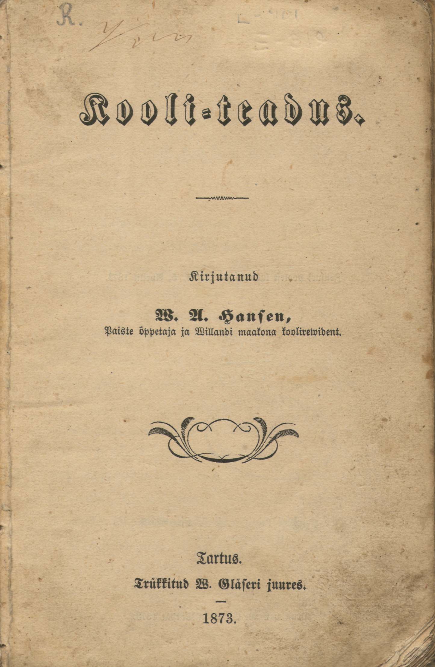 Autor Woldemar Adolf Hansen on tiitellehel end nimetanud Paistu õpetajaks ja Viljandi koolirevidendiks. Seda võib täpsustada nii, et tegu oli Paistu Maarja koguduse õpetaja ja ühtlasi nii Pärnu kui ka Viljandi kreisi vaimuliku koolirevidendiga.