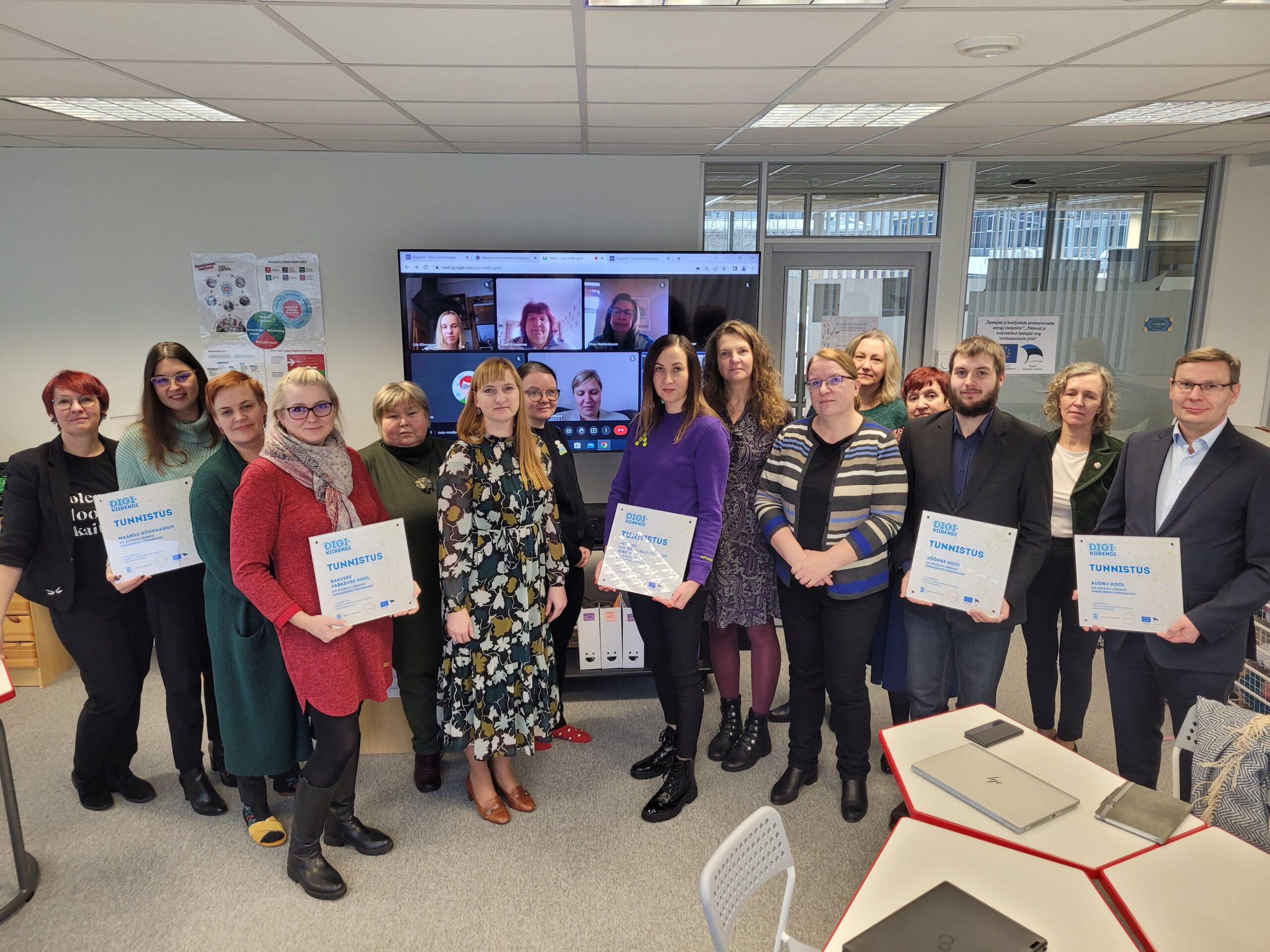 Harno „Digikiirendi“ programmis osalenud koolide esindajad võtavad vastu programmi lõputunnistusi. Foto: Triin Saar
