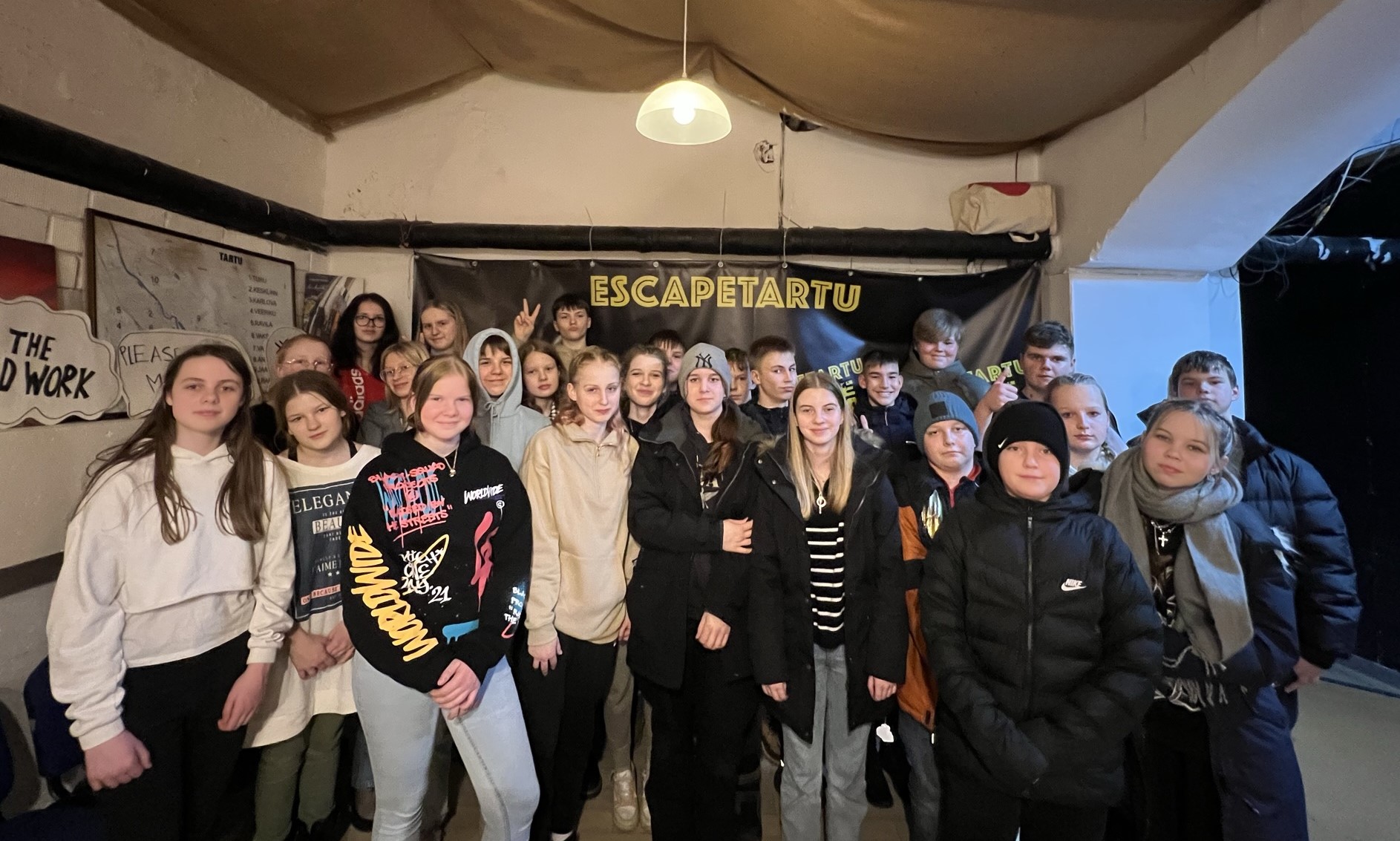 Sindi Gümnaasiumi 6. ja 7. klassi õpilased EscapeTartut külastamas. Foto: EscapeTartu