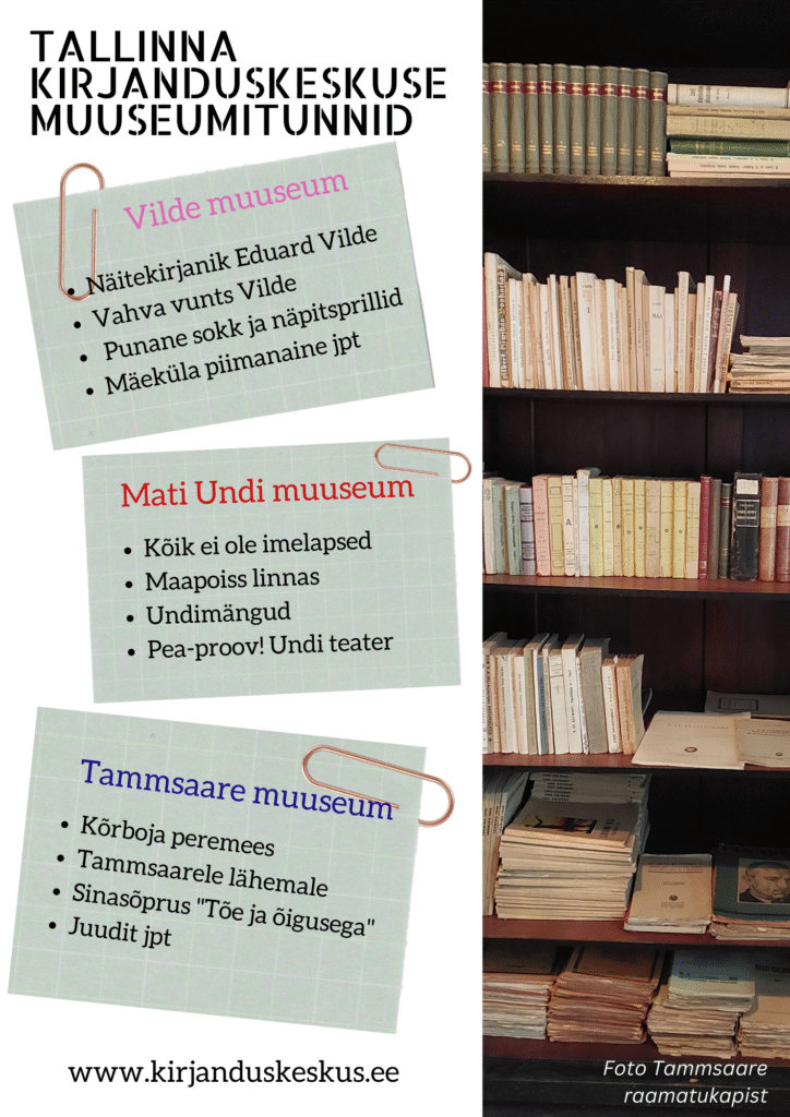 Infot kõigi muusemitundide kohta leiab Tallinna Kirjanduskeskuse kodulehelt  www.kirjanduskeskus.ee.