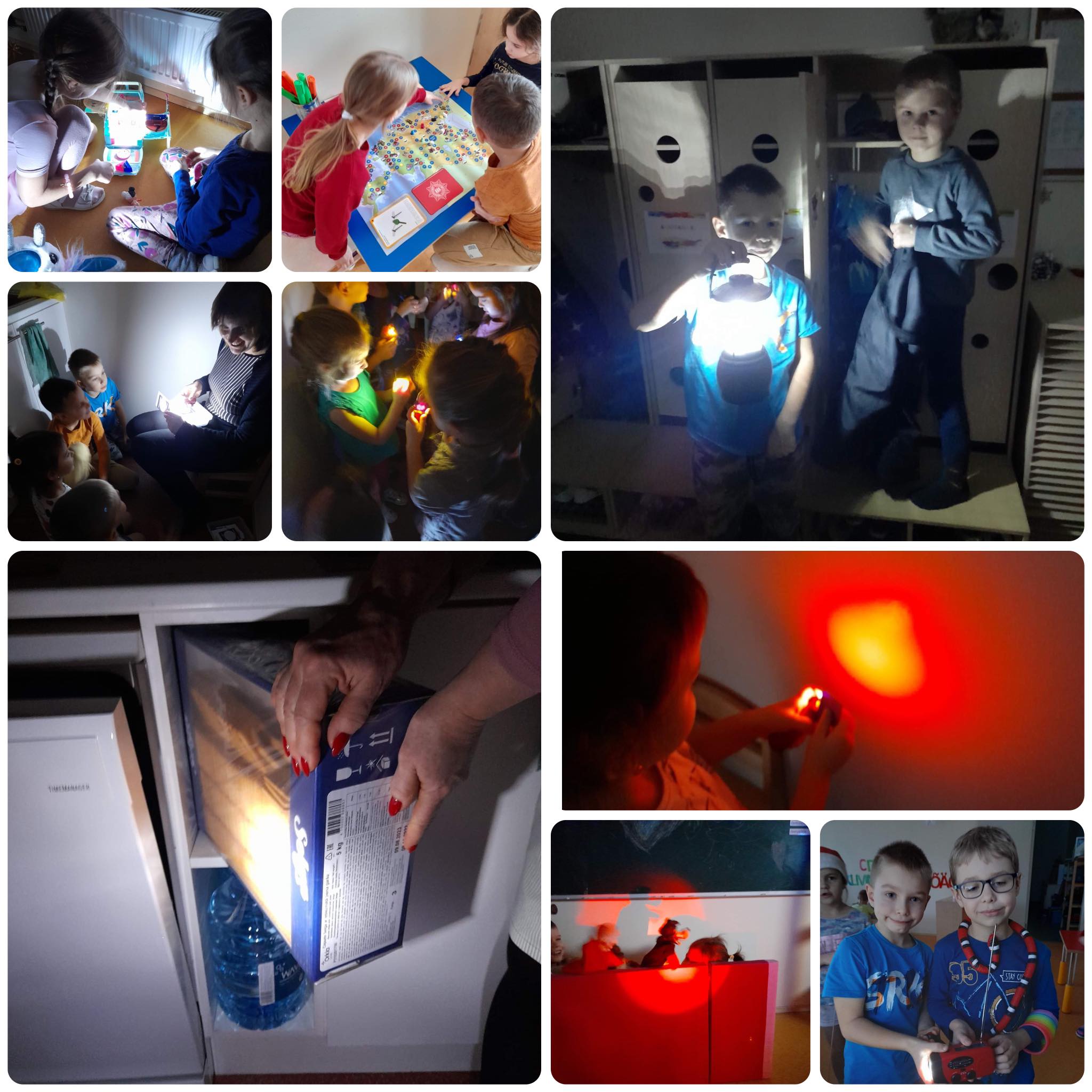 Päev elektrita algas Värvikildude rühmas juba lasteaeda jõudes ‒ lahti riietusid lapsed hämaras ruumis. Rühmas olles näitasid lapsed üles loovust ja mõtlesid välja palju mänge: üks laps ehitas küünaldega poe ja müüs seal mitmesuguseid tooteid. Teine tuli välja prožektoritega nukuetenduse ideega. Lapsed mängisid taskulambi valgel, lambi sai iga laps neljandaks advendiks päkapikult kingituseks. Huvitav oli näha, et abivalmidus ja leidlikkus olid sel päeval eriti olulised oskused. Aidati üksteist pimedas liikumisel ja taskulambiga valgustati üksteise tegevust. Taskulampide abil muudeti värve, see oli kindlasti põnev ja meeldejääv.