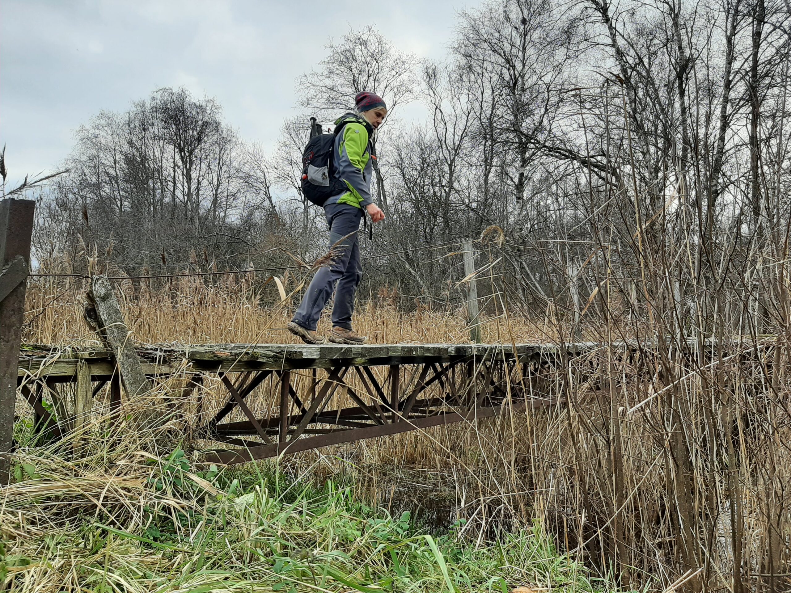 Matkapäeva hommikul viisin neli saetud lauda kraavi juurde ja kui seltskonnaga lagendiku äärde jõudsime, selgitasin põgusalt eesolevat olukorda, viipasin käega järgmise kogunemiskoha suunas ning andsin esimestele kaasa sae. Tahtsin, et noored ise lahenduse leiaksid ja siis ka tegutseksid. Paju jäi püsti. Laudadest ehitati tugev purre ja ketina hakati rattaid teisele kaldale saatma.