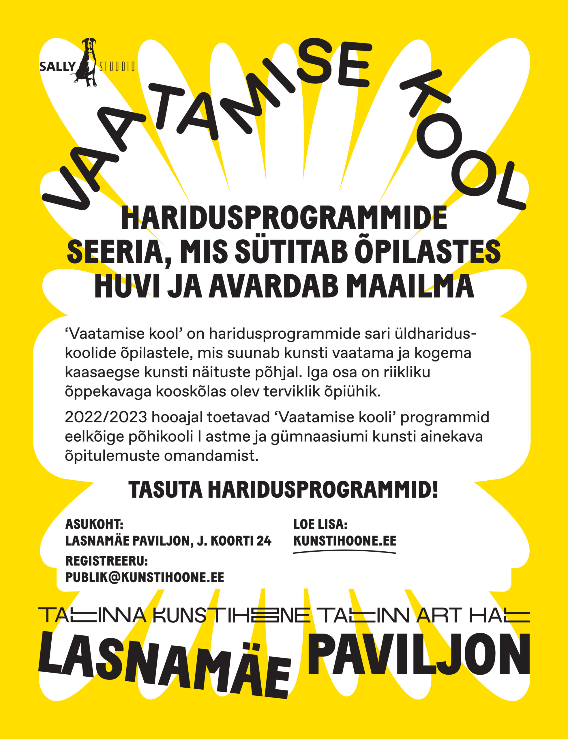 Tallinna Kunstihoone ja Sally Stuudio koostöös sündis õpilastele ja õpetajatele tasuta haridusprogramm „Vaatamise kool“, mis on kooskõlas riikliku õppekavaga ja õpetajatele süsteemne abiline tundide läbiviimisel. Pooleteise hooaja jagu tunde ja osalejate sooja tagasisidet on juba seljataga, veebruarist lisandub põhikooli esimese astme programmile ka kauaoodatud „Vaatamise kool“ gümnaasiumile.