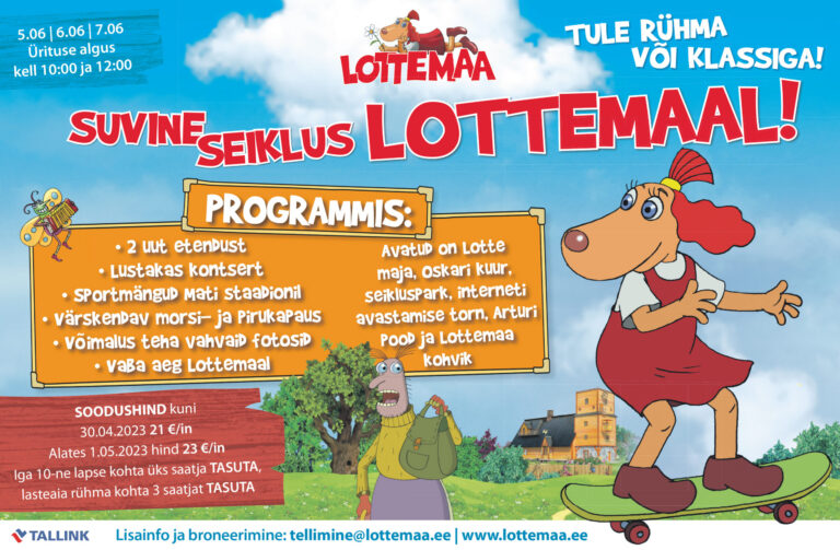 Kohtade arv on piiratud! Broneerimine tellimine@lottemaa.ee. Lisainfo www.lottemaa.ee.