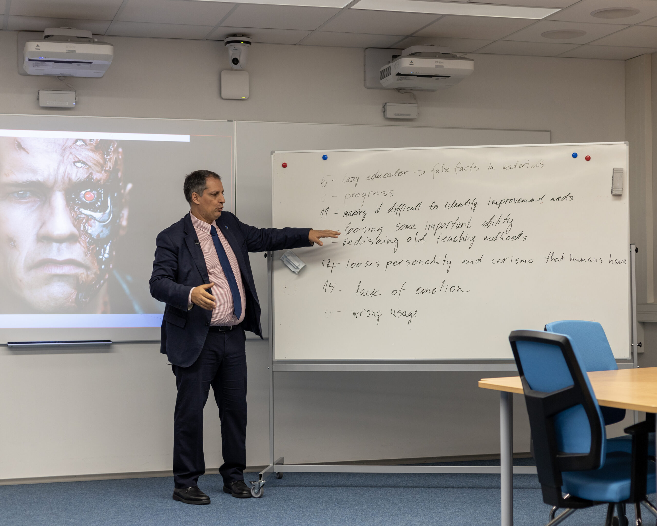 Muuhulgas leiti, et AI kasutamine võib muuta õpetaja laisaks, mistõttu võib õppematerjalidesse sattuda valefakte. Samuti toodi ohuna välja, et õpe kaotab inimesele omase emotsionaalsuse, isikupära ja karisma. Õpetaja paneb õpilase mõtlema, muudab õppimise mitmekesiseks ja loob õppimiseks-suhtlemiseks toetava õppekeskkonna.