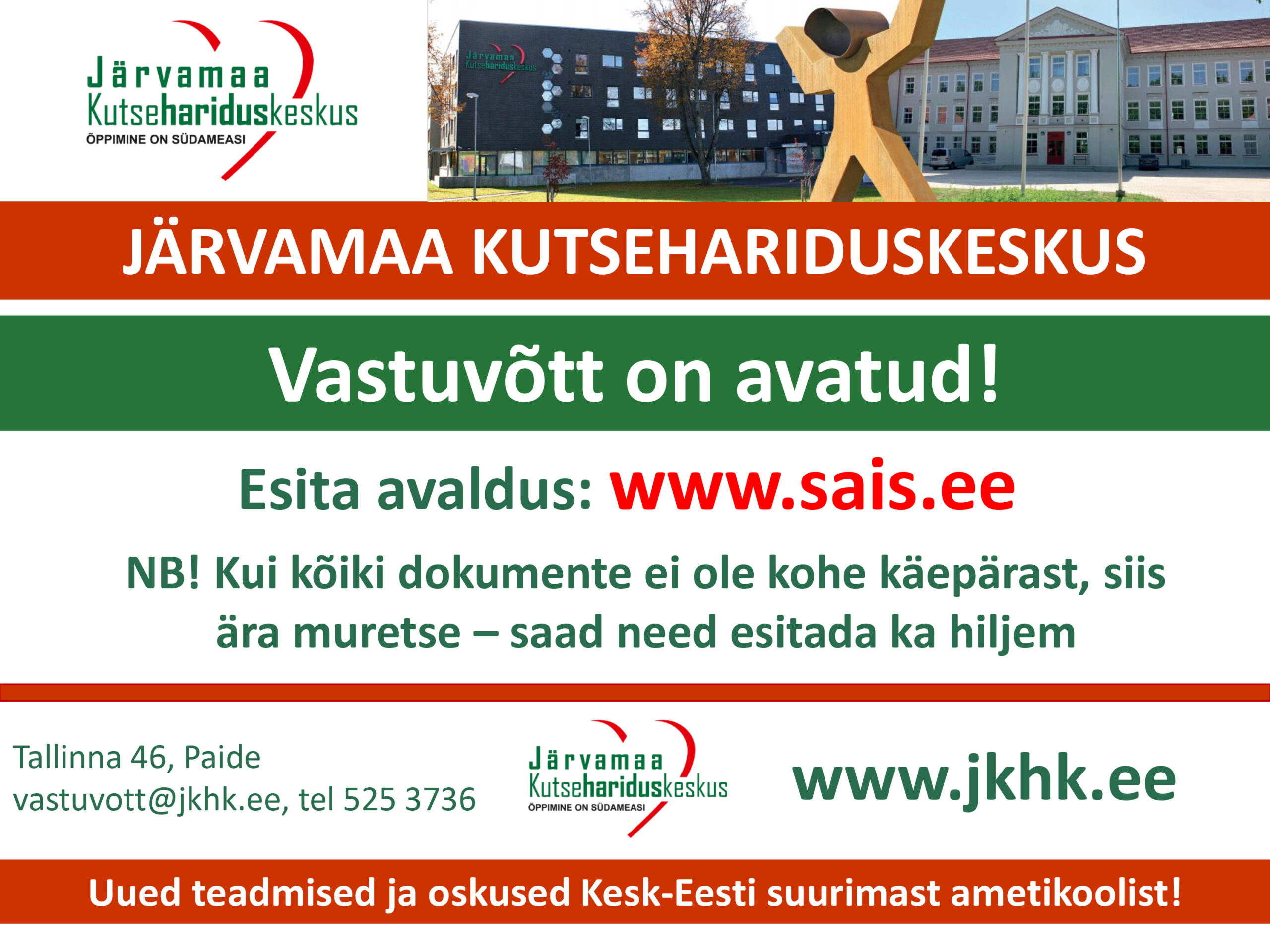 Kesk-Eestis asuv Järvamaa Kutsehariduskeskus on Eesti üks kõige laiema erialavalikuga koole, mille õppekohad asuvad kahes paigas: Paides ja Säreveres. Kool pakub võimalust omandada kutseharidust ja kutsekeskharidust nii päeva-, sessioon- kui töökohapõhises õppes ning täiendada end väga erinevatel erialadel oma ala professionaalide käe all.