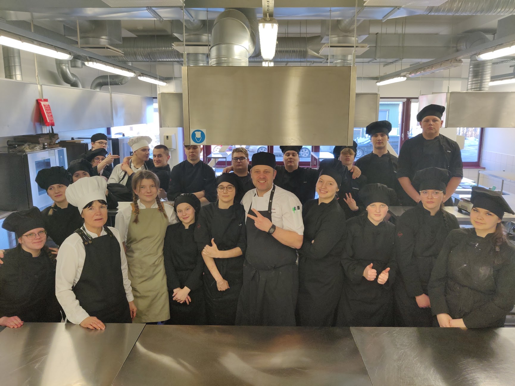„Meil on kuus õppekööki ja à la carte restoran Perho, kus kogu töö peaksid tegema õpilased ja enamjaolt teevadki,“ tutvustab ta oma kooli ja tööd. Restoranis on tööl hommikune ja õhtune vahetus, saalis kolm juhendajat, köögis hommikuti neli ja õhtuti kaks. Restorani lähedal on surnuaed ja tihti tellitakse peielaudu. Restoranis vahetub praktikantide rühm viie nädala tagant. „Juhendamine on selline, et juhendajatel on üldiselt käed taskus ja õpilased teevad, aga loomulikult ma näitan ette,“ räägib juhendaja.