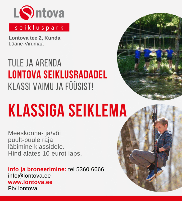 Kontakt: Lontova seikluspark, Lontova tee 2, Kunda, Lääne-Virumaa.